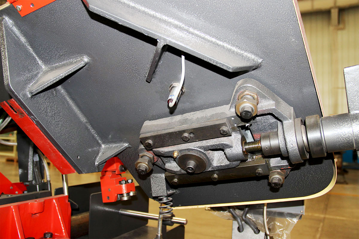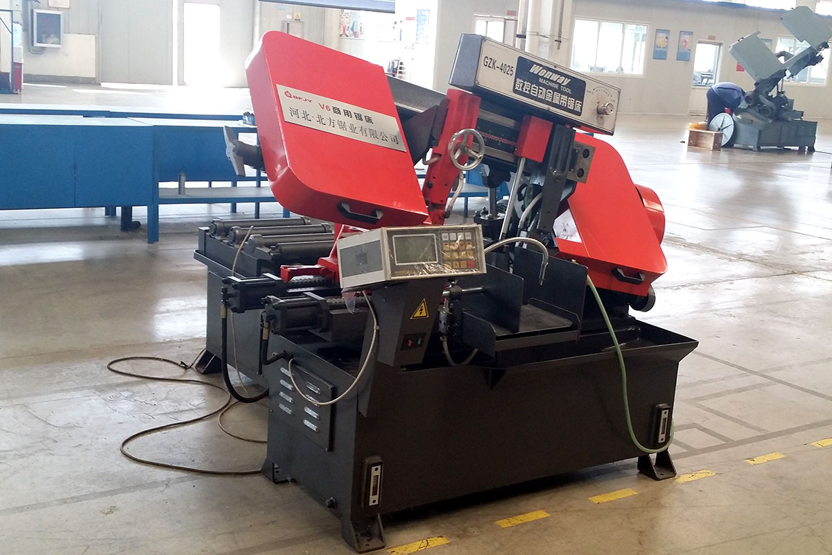 帶鋸條快速接近工件并自動轉(zhuǎn)入工進(jìn)鋸切速度,抬鋸高度隨工件大小自動調(diào)整,在自動循環(huán)過程中可省去很多空車時(shí)間。
