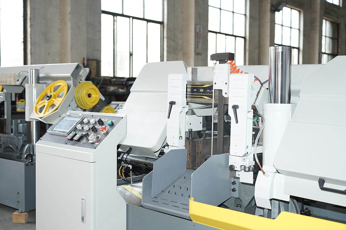 它具有結(jié)構(gòu)緊湊、美觀大方、鋸切速度快、精度高、鋸縫窄、噪聲小等優(yōu)點(diǎn)。是替代圓盤(pán)鋸、弓鋸床的新型節(jié)能產(chǎn)品。廣泛適用于機(jī)電、冶金、汽車、橋梁、船舶等行業(yè)鋸切各種黑色、有色金屬材料,特別適用于長(zhǎng)型材的自動(dòng)鋸切。