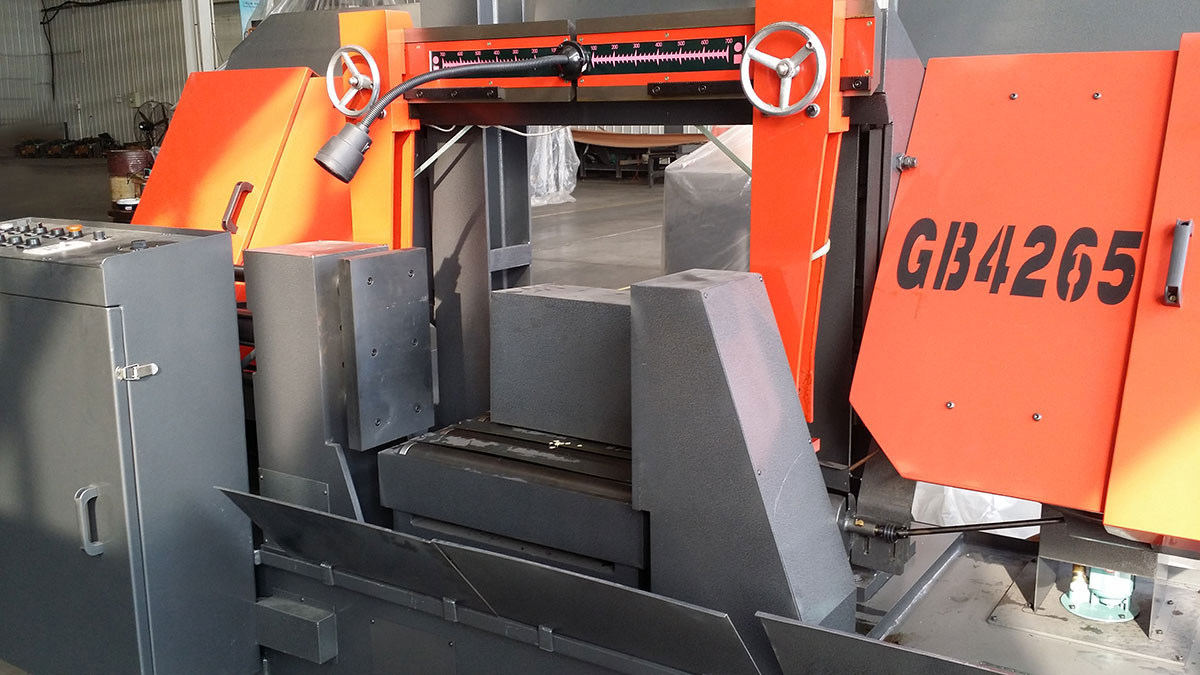 A.雙柱結(jié)構(gòu)合理,床身重,鋸架沉穩(wěn),高可靠性蝸輪蝸桿傳動(dòng),性能穩(wěn)定可靠,精度高。